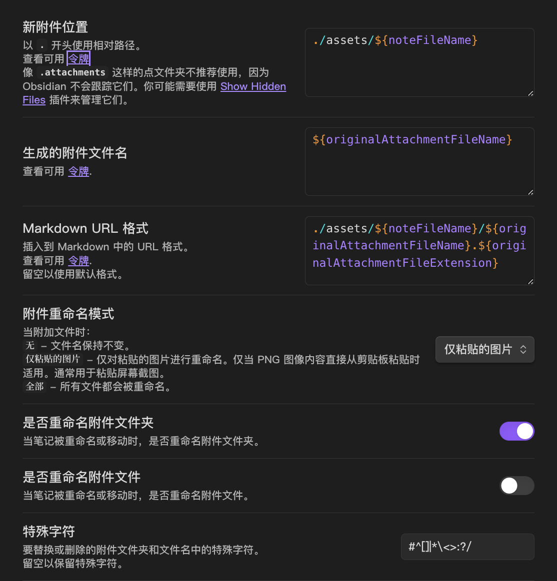 之前我的所有md文件的图片都是保存到$filename这个目录,也就是md文件名生成一个同名目录,然后放入图片,typora和marktext都有这个功能;但是hugo生成的静态文件,也是把md文件名生成一个同名目录,就导致了之前的图片全部不能找到,md文件的引用到图片的地方,全部都得重写,不过还好。我使用obsidian写博客,虽然obsidian没有自带的功能,让图片文件放入md变量的目录,但是有插件(Custom Attachment Location),现在我的图片路径是./asstes/$filename,之前 obsidian那个插件的设置也要去查看文档,有点麻烦。